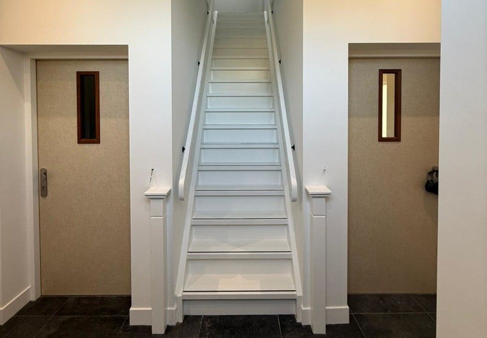 In deze gemeenschappelijke hal van een appartementencomplex hebben we samen met ons team de volledige transformatie gerealiseerd: van sloopwerk tot het klaarmaken voor stuc- en schilderwerk.